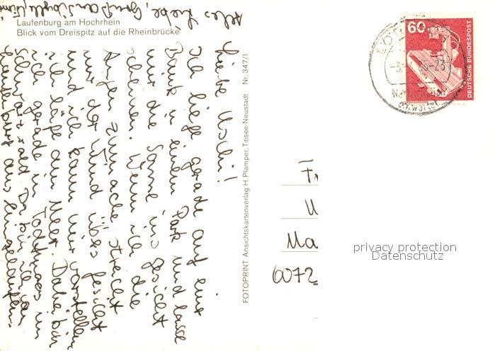 73212888 alte Postkarte Laufenburg Baden Blick vom Dreispitz auf die Rheinbruecke postalisch gelaufen Erhaltung siehe scans [WerneD78] KatCode: 11110008337066