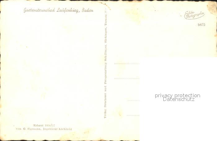 31728663 Laufenburg Baden Gartenstrandbad postalisch nicht gelaufen Erhaltung siehe scans KatCode: 11110008337066