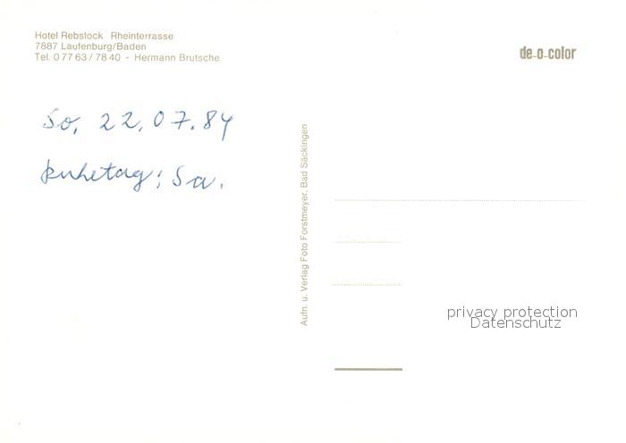 73158159 Laufenburg Baden Hotel Rebstock Rheinterrasse postalisch nicht gelaufen Erhaltung siehe scans [WerneD78] KatCode: 11110008337066