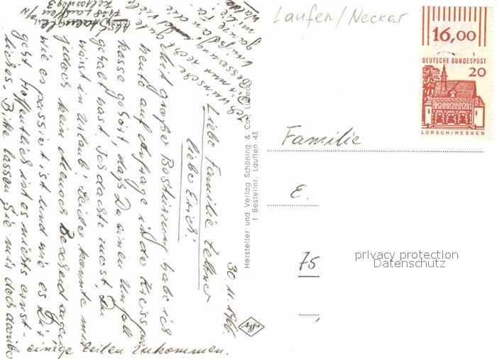 72800888 alte Postkarte Lauffen Neckar Blick ueber den Fluss zur Kirche Stadtmauer postalisch gelaufen Erhaltung siehe scans [FriedD77] KatCode: 11110008125056
