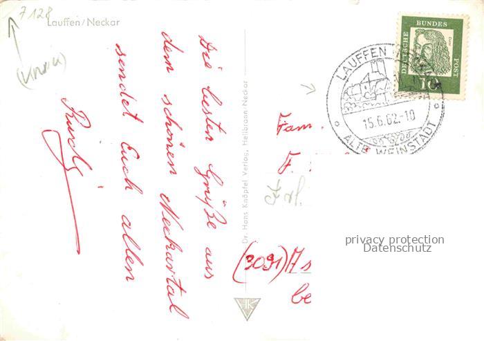 74007283 alte Postkarte Lauffen Neckar Heilbronn BW Fliegeraufnahme postalisch gelaufen Erhaltung siehe scans [FriedD77] KatCode: 11110008125056