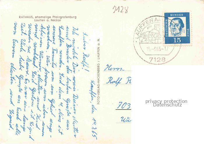 74054242 alte Postkarte Lauffen Neckar Heilbronn BW Rathaus ehemalige Pfalzgrafenburg Partie am Neckar postalisch gelaufen Erhaltung siehe scans [FriedD77] KatCode: 11110008125056