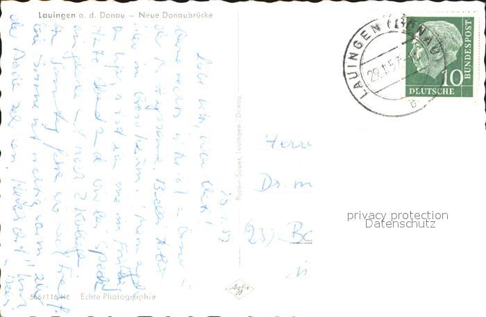 72595685 alte Postkarte Lauingen Donau Neue Donaubruecke postalisch gelaufen Erhaltung siehe scans [FriedD77] KatCode: 11110009773144