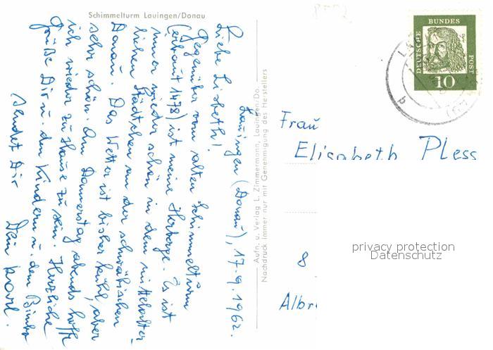 72894630 alte Postkarte Lauingen Donau Schimmelturm postalisch gelaufen Erhaltung siehe scans [KathaD81] KatCode: 11110009773144