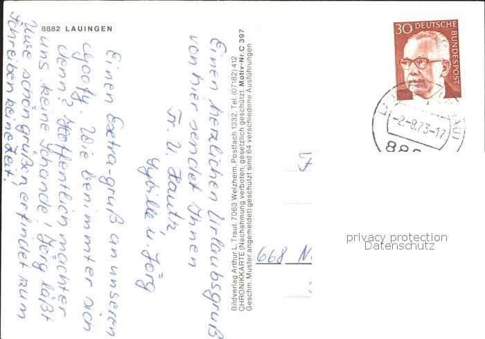 72142851 alte Postkarte Lauingen Donau Schloss Rathaus Schimmelturm Magnus-Denkmal postalisch gelaufen Erhaltung siehe scans KatCode: 11110009773144