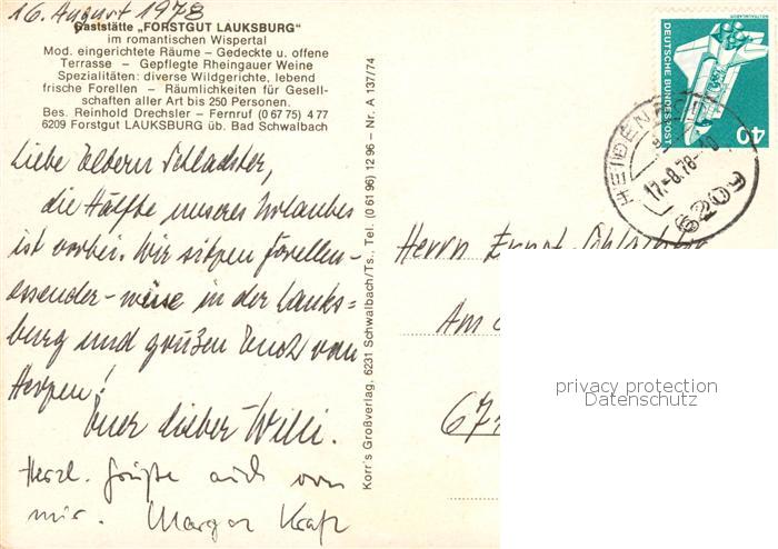 73845226 alte Postkarte Lauksburg Wispertal Bad Schwalbach Gaststaette Forstgut Laugsburg Gastraum Panorama postalisch gelaufen Erhaltung siehe scans [WerneD78] KatCode: 11110006439002