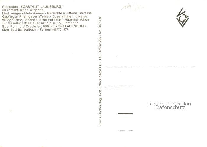 73796519 Lauksburg Wispertal Bad Schwalbach Gaststaette Forstgut Lauksburg postalisch nicht gelaufen Erhaltung siehe scans [WerneD78] KatCode: 11110006439002