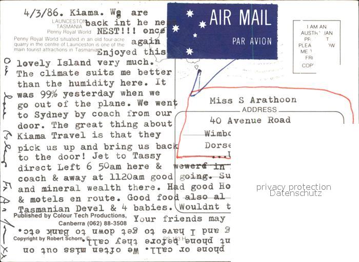 old postcard Launceston Australia Penny Royal World Wasserfall postalisch gelaufen Erhaltung siehe scans