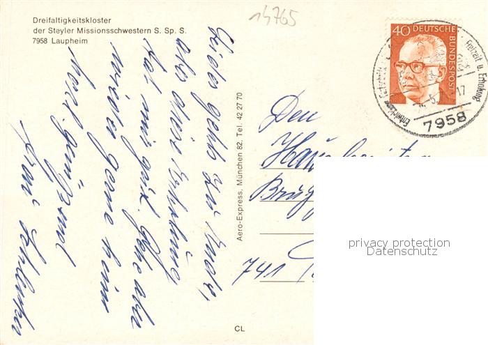 73796521 alte Postkarte Laupheim Dreifaltigkeitskloster der Steyler Missionsschwestern Zimmer Gastraum Hauskapelle postalisch gelaufen Erhaltung siehe scans [WerneD78] KatCode: 11110008426070