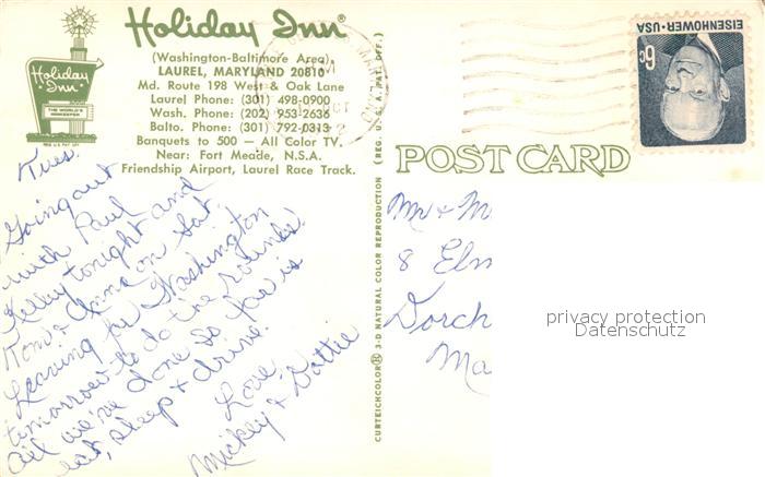 73127758 old postcard Laurel Maryland Holiday Inn postalisch gelaufen Erhaltung siehe scans [KathaD81] KatCode: 14140220000000
