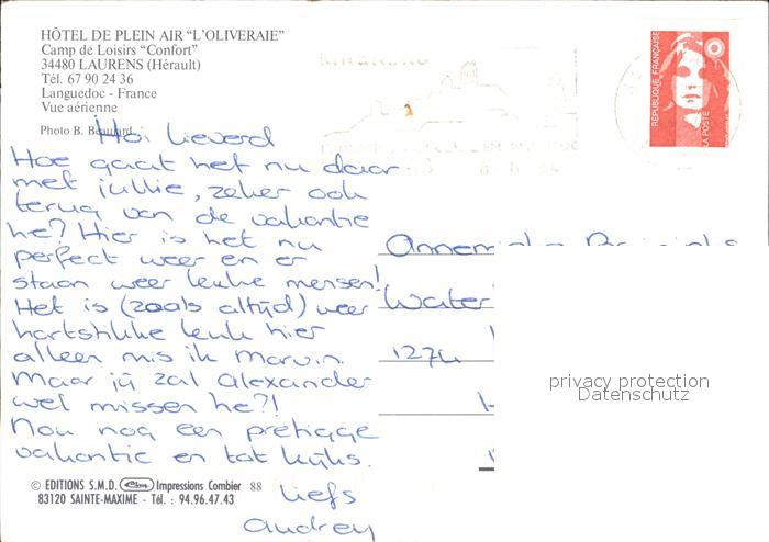 12920915 carte postale Laurens Hotel de Plein Air L’Oliveraie Camp de Loisirs Confort vue aerienne postalisch gelaufen Erhaltung siehe scans [FriedD46] KatCode: 11170034134130