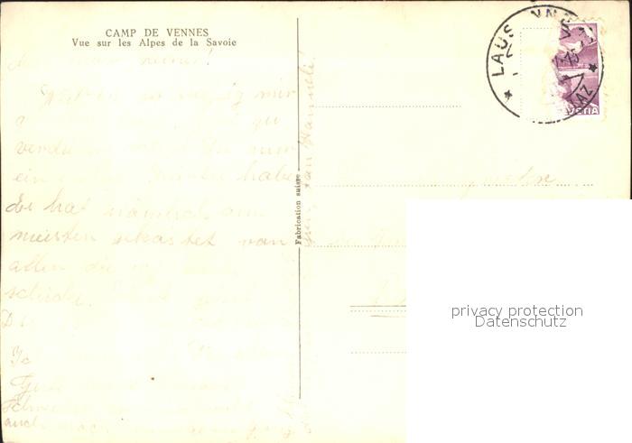 11655163 alte Postkarte Lausanne VD Camp de Vennes et Alpes de Savoie postalisch gelaufen Erhaltung siehe scans KatCode: 11470240795128