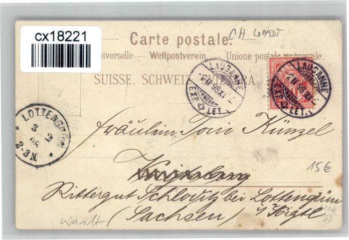 10724198 alte Postkarte Lausanne VD Lausanne postalisch gelaufen KatCode: 11470240795128