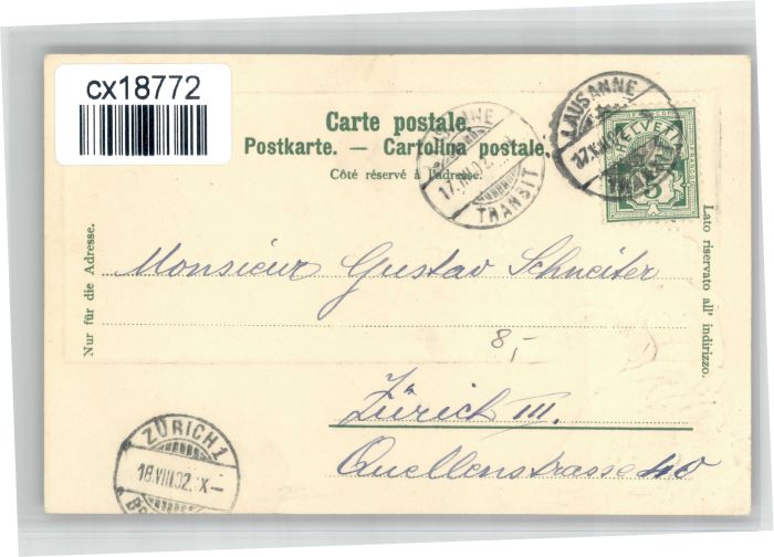 10724207 alte Postkarte Lausanne VD Lausanne Schloss Chillon postalisch gelaufen KatCode: 11470240795128
