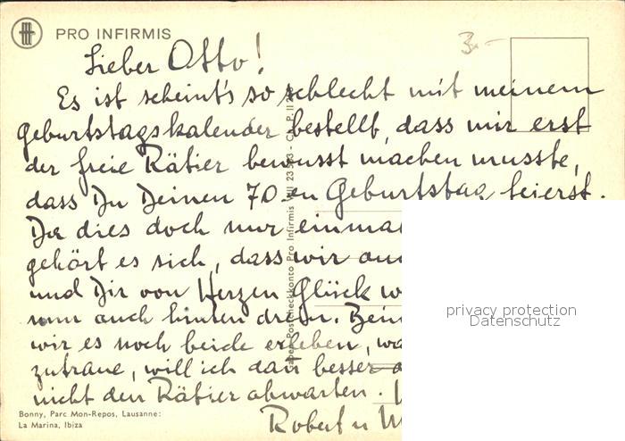 Lausanne VD Parc Mon Repos Lac Leman Pro Infirmis Karte Kuenstlerkarte Bonny