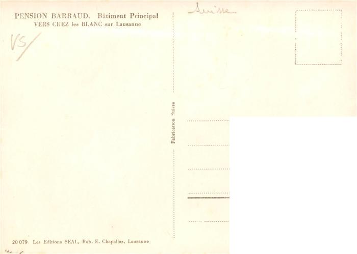 13876954 Lausanne VD Pension Barraud Batiment Principal Vers Chez les Blanc postalisch nicht gelaufen Erhaltung siehe scans [FriedD77] KatCode: 11470240795128