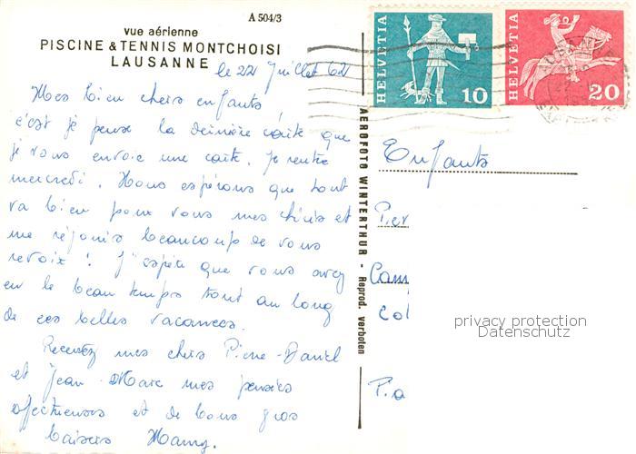13850356 Lausanne VD Vue aerienne Piscine et Tennis Montchoisi postalisch nicht gelaufen Erhaltung siehe scans [WerneD78] KatCode: 11470240795128