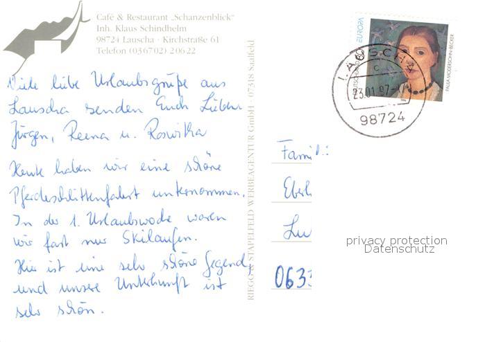73654259 alte Postkarte Lauscha Cafe Restaurant Schanzenblick Gaststube Panorama postalisch gelaufen Erhaltung siehe scans [WerneD78] KatCode: 11110016072011