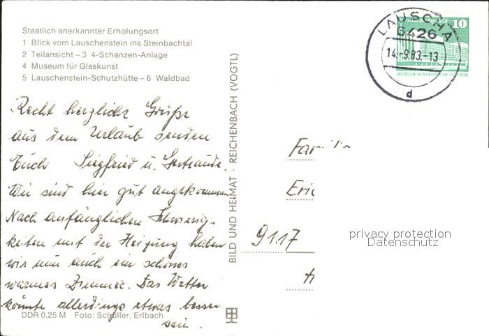72386187 alte Postkarte Lauscha Steinbachtal Museum fuer Glaskunst Waldbad postalisch gelaufen Erhaltung siehe scans KatCode: 11110016072011