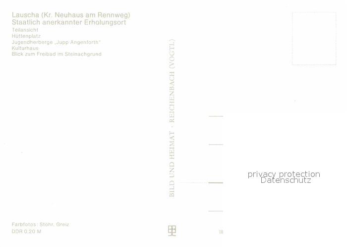 72919636 Lauscha Teilansicht Huettenplatz Jugendherberge Kulturhaus Freibad Steinachgrund postalisch nicht gelaufen Erhaltung siehe scans [FriedD77] KatCode: 11110016072011