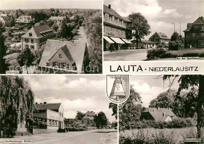 72632495 alte Postkarte Lauta Hoyerswerda Teilansicht Partie an der Sparkasse Bauernmuehle Senftenberger Strasse postalisch gelaufen Erhaltung siehe scans [FriedD77] KatCode: 11110014292290
