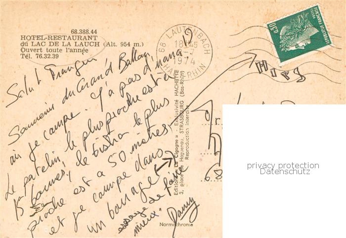 13793438 Lautenbach 68 Haut Rhin Alsace Hôtel Restaurant du Lac de la Lauch postalisch gelaufen Erhaltung siehe scans [FriedD77] carte postale Frie Katcode 11170068368177