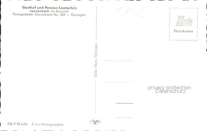 41775158 Lautenbach Gernsbach Gasthof Pension Lautenfels postalisch nicht gelaufen Erhaltung siehe scans KatCode: 11110008216017