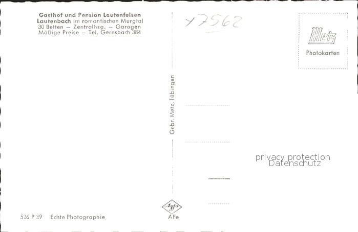 41775124 Lautenbach Gernsbach Gasthof Pension Lautenfelsen postalisch nicht gelaufen Erhaltung siehe scans KatCode: 11110008216017