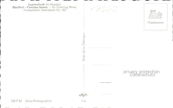 41775119 Lautenbach Gernsbach Gasthof Pension Sonne postalisch nicht gelaufen Erhaltung siehe scans KatCode: 11110008216017