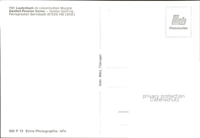 41775647 Lautenbach Gernsbach Gasthof Pension Sonne Schwimmbad postalisch nicht gelaufen Erhaltung siehe scans KatCode: 11110008216017