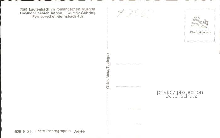 41775161 Lautenbach Gernsbach Gasthof Pension Sonne postalisch nicht gelaufen Erhaltung siehe scans KatCode: 11110008216017