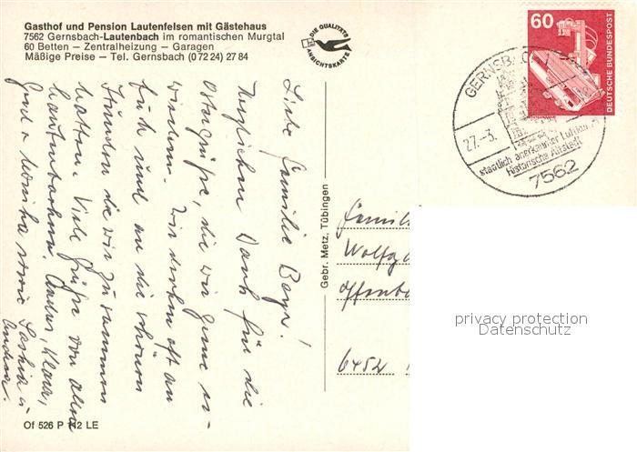 73055872 alte Postkarte Lautenbach Gernsbach Lautenfelsen Teufelsmuehle Schloss Eberstein postalisch gelaufen Erhaltung siehe scans [WerneD78] KatCode: 11110008216017