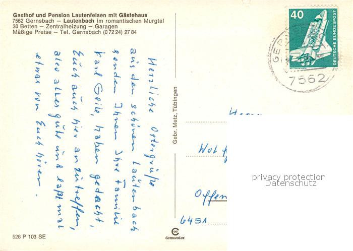 73056264 alte Postkarte Lautenbach Gernsbach Ortsblick Lautenfelsen Teufelsmuehle Schloss Eberstein postalisch gelaufen Erhaltung siehe scans [WerneD78] KatCode: 11110008216017
