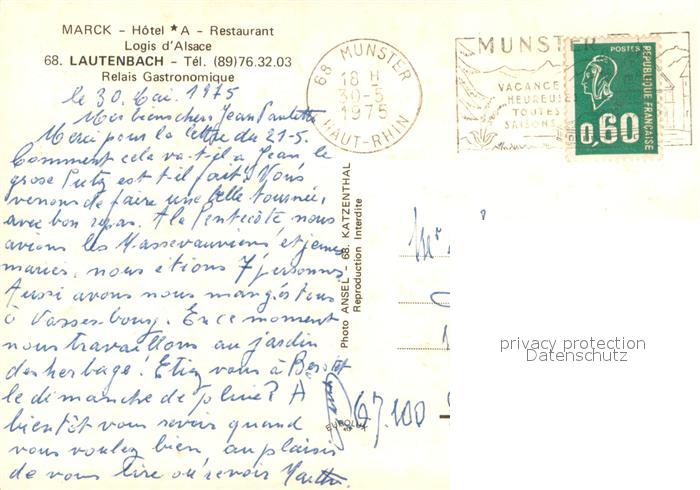 13631523 Lautenbach Haut Rhin Elsass Marck Hotel Restaurant postalisch gelaufen Erhaltung siehe scans [WerneD78] carte postale Wern Katcode 11170068368177