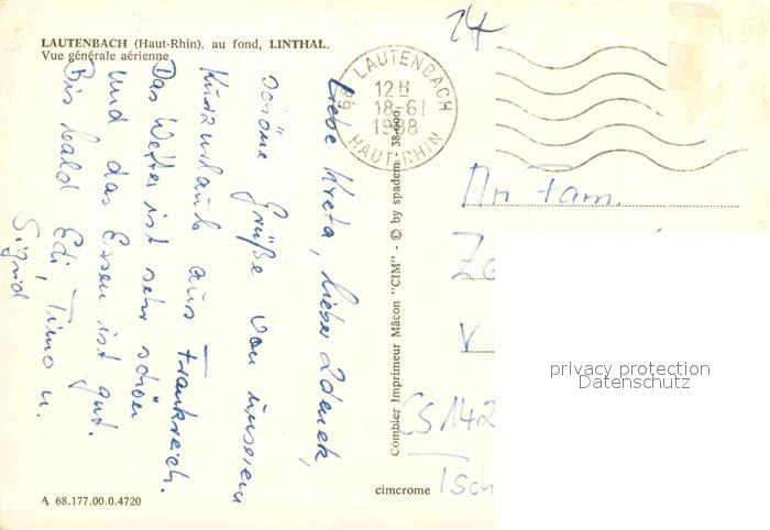 13169548 carte postale Lautenbach Haut Rhin Elsass Vue aérienne postalisch gelaufen Erhaltung siehe scans [FriedD77] KatCode: 11170068368177