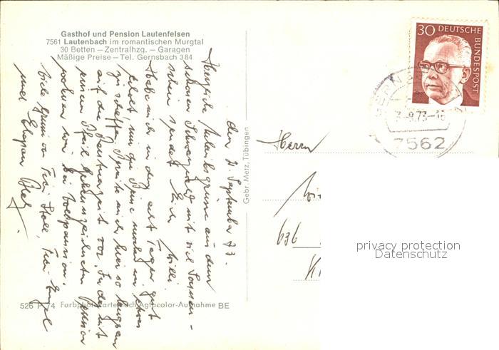 72530889 alte Postkarte Lautenbach Renchtal Gasthaus Pension Lautenfelsen postalisch gelaufen Erhaltung siehe scans [LiesaD40 kt094box] KatCode: 11110008317067