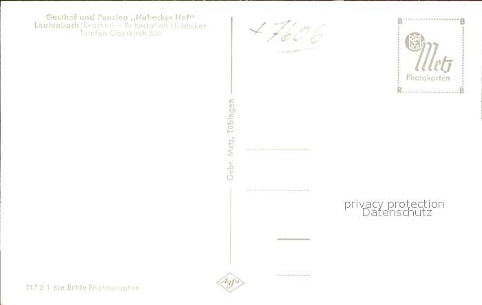 41767586 Lautenbach Renchtal Gasthof Pension Hubacker Hof postalisch nicht gelaufen Erhaltung siehe scans KatCode: 11110008317067