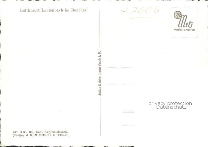 41768106 Lautenbach Renchtal Kupfertiefdruck postalisch nicht gelaufen Erhaltung siehe scans KatCode: 11110008317067