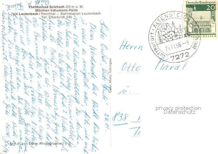 72987409 alte Postkarte Lautenbach Renchtal Muentner Schumann Heim postalisch gelaufen Erhaltung siehe scans [WerneD78] KatCode: 11110008317067