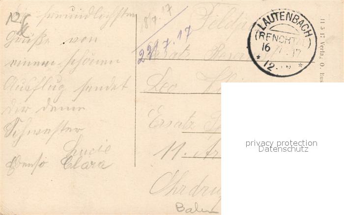 43510536 alte Postkarte Lautenbach Renchtal Ortsansicht mit Kirche Gasthof Pension Zum Kreuz Schwarzwald postalisch gelaufen Feldpostkarte Erhaltung siehe scans [FriedD77] KatCode: 11110008317067