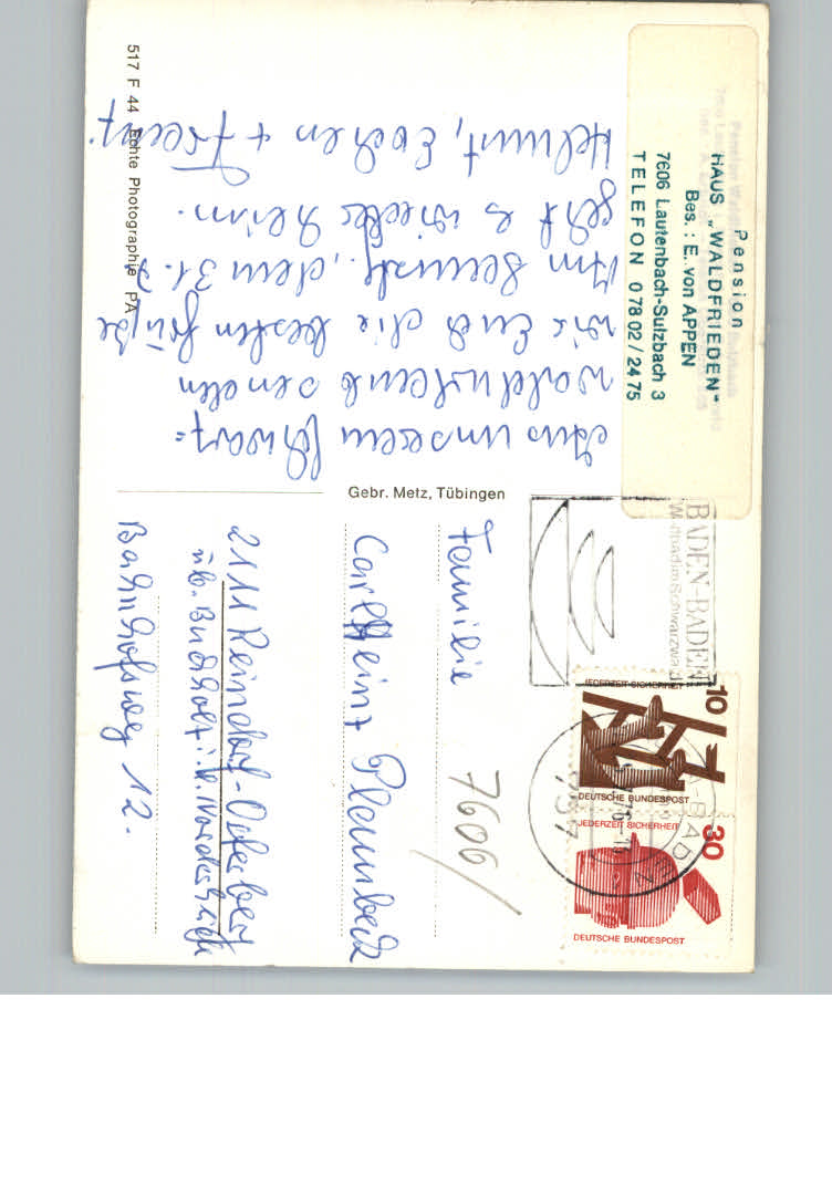 31151588 Lautenbach Renchtal Pension Haus Waldfrieden postalisch nicht gelaufen KatCode: 11110008317067