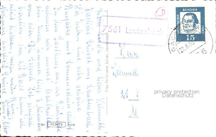 71900803 alte Postkarte Lautenbach Renchtal Wegkreuz Gasthaus Pension postalisch gelaufen Erhaltung siehe scans KatCode: 11110008317067
