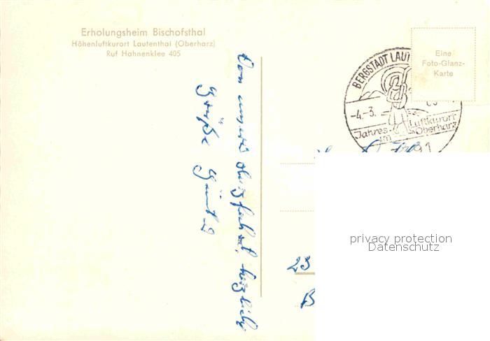 72708547 alte Postkarte Lautenthal Harz Erholungsheim Bischofsthal postalisch gelaufen Erhaltung siehe scans [FriedD77] KatCode: 11110003153007