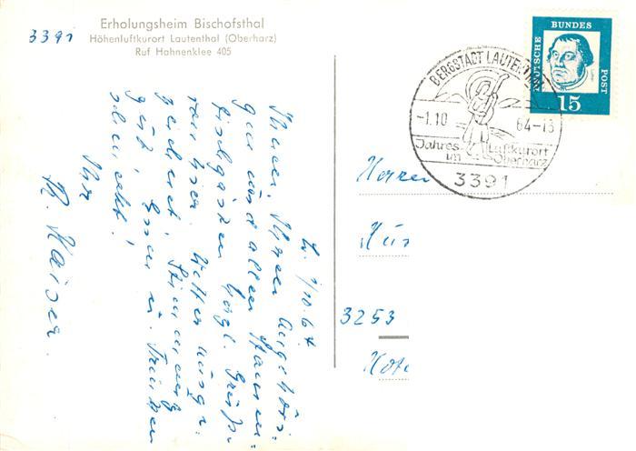 73894201 alte Postkarte Lautenthal Harz Erholungsheim Bischofsthal postalisch gelaufen Erhaltung siehe scans [FriedD77] KatCode: 11110003153007