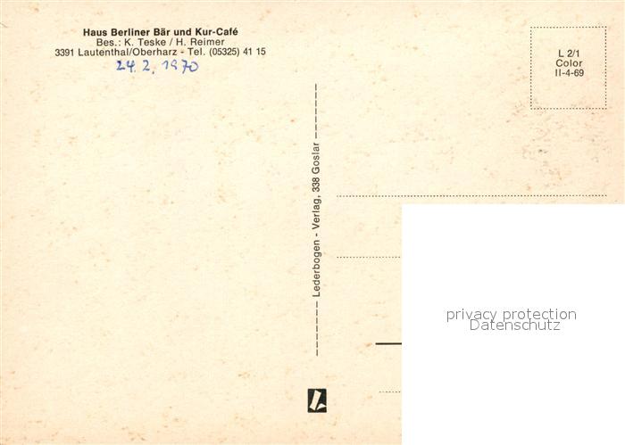 73093719 Lautenthal Harz Haus Berliner Baer postalisch nicht gelaufen Erhaltung siehe scans [NatalD47] KatCode: 11110003153007