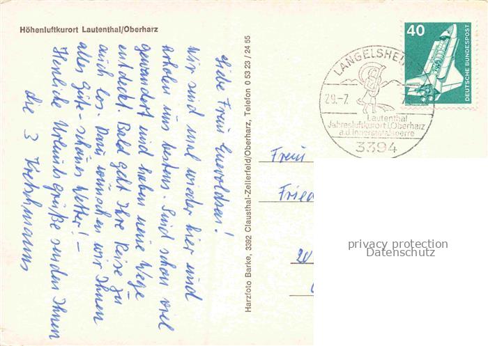 74154821 alte Postkarte Lautenthal Harz Langelsheim Goslar Fliegeraufnahme postalisch gelaufen Erhaltung siehe scans [WerneD78] KatCode: 11110003153007