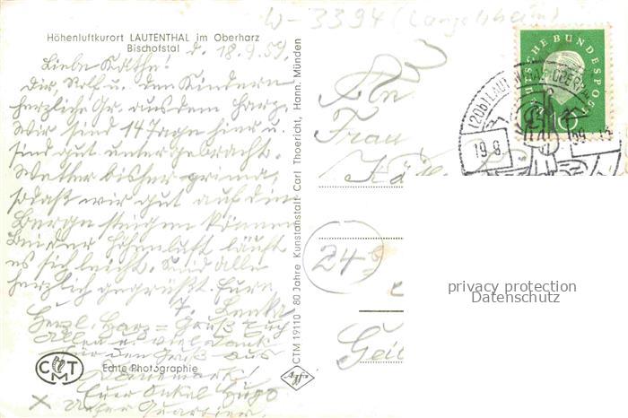 74087846 alte Postkarte Lautenthal Harz Langelsheim Goslar Teilansicht Hoehenluftkurort Bischofstal postalisch gelaufen Erhaltung siehe scans [FriedD77] KatCode: 11110003153007