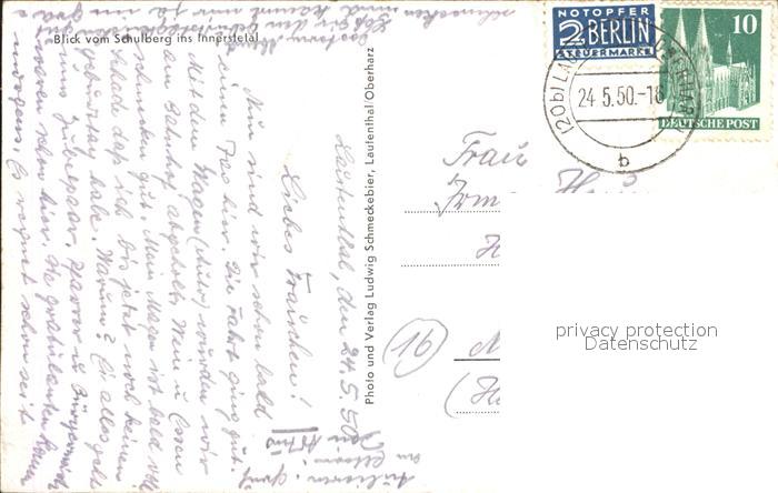 72081306 alte Postkarte Lautenthal Harz Panorama Blick vom Schulberg ins Innerstetal postalisch gelaufen Erhaltung siehe scans KatCode: 11110003153007