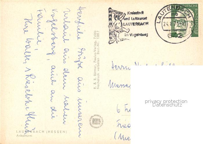73209224 alte Postkarte Lauterbach Hessen Ankerturm postalisch gelaufen Erhaltung siehe scans [NatalD47] KatCode: 11110006535011
