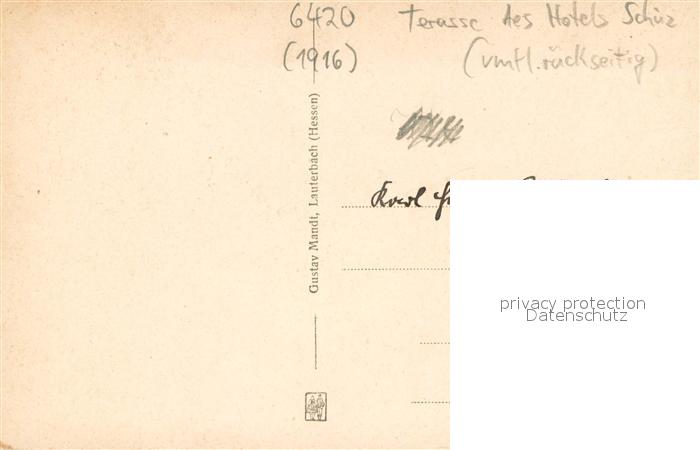 73749342 Lauterbach Hessen Hotel Terrasse Schuez postalisch nicht gelaufen Erhaltung siehe scans [WerneD78] KatCode: 11110006535011